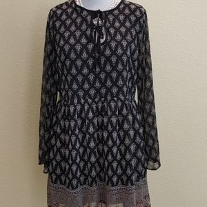 Petty Bono mini dress, front tie, elastic waist, hits above knee, lined. EUC, 100%polyester.