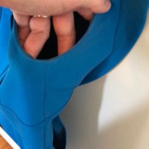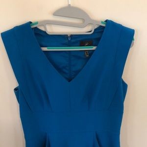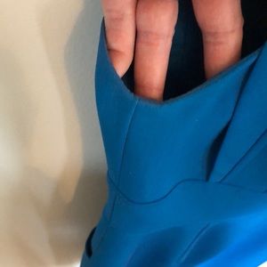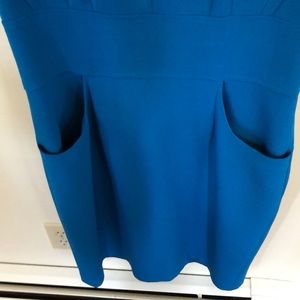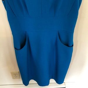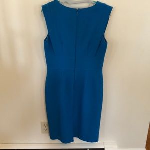Beautiful blue sheath dress with pockets! Excellent condition with only the slightest discoloration at the underarm inseam. Flattering silhouette. I love this dress. More Measurements available upon request. Thank you for visiting my closet 😊!