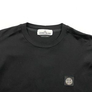 Men's black Stone Island crew neck t-shirt with long sleeves and logo embellishment at chest.
