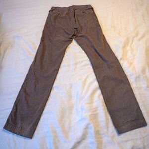 Hickey Freeman is most known for their quality suits. Here we have a more business-casual pair of 100% cotton trousers. They're really comfortable; the material has a bit of soft texture to it. I wish I knew the word for it, but it really sets them apart. Be sure to check out the close-ups.