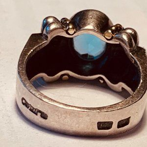 LAGOS Aquamarine blue stone set in Silver with 1K gold. Size 7 1/2