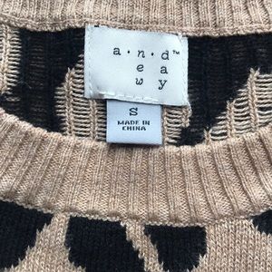 A New Day Leopard print sweater. Approx 24 inches shoulder to hem and 18 inches armpit to armpit. Very light pilling under armpits as shown. (It’s easily removable and hardly noticeable. No rips/tears. Smoke free and pet free home.