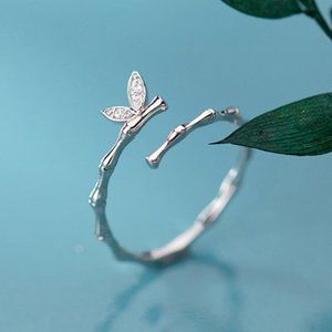 Sterling Silver Diamond Butterfly Adjustable Ring