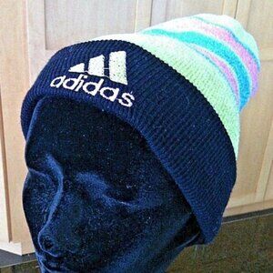 Adidas Hat Winter Beanie Cap Striped Toque Pom Pom Unisex Cold Weather Warm Ears