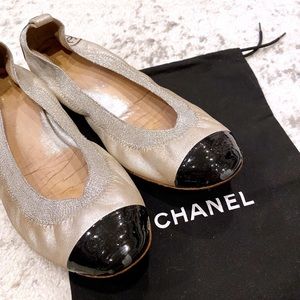 ✅SOLD Chanel spirit cap toe silver flats 38.5 worn