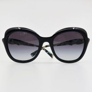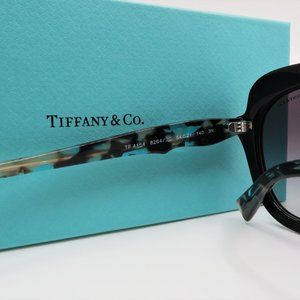 TIFFANY & CO. TF 4154 8264/3C Women's Over-Sized Shiny Black Sunglasses w/ Blue Tortoise Temples. New 100% Authentic Sunglasses. The Lens width, Bridge and Temple size is 54 mm 21 mm 140 mm. Each frame is acquired directly from the manufacturer which verifies authenticity. Please refer to photo to view what is shipped with your purchase. Made in Italy.