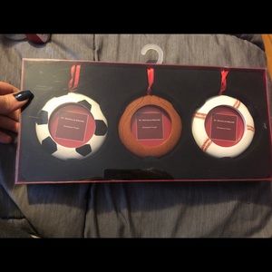 Football soccer baseball 3 piece ornament set