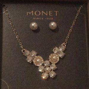 π·NWT Just Too Fabulous β Monet β Rhinestone / Pearl Necklace / Pierced Earrings Set π·