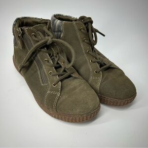 100% cotton linen. Light olive green/gray and white stripes. The dress overall looks light gray.