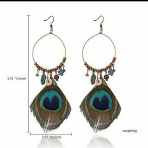 RELISTED Boho hoop peacock feather earrings