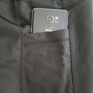 Fantastic black workout capris that feature two deep pockets (one zippered) that easily hold larger phones and other workout essentials securely while you workout! They have never been worn and are in perfect condition (NWOT)!