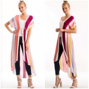 Adorable pink blush striped kimono. Pair with you favorite outfit. Great layering piece. Rayon. Model is wearing size small.
