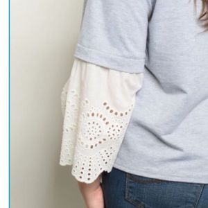Pretty Grey and white lace plus shirt NWT 0X 1X 2X