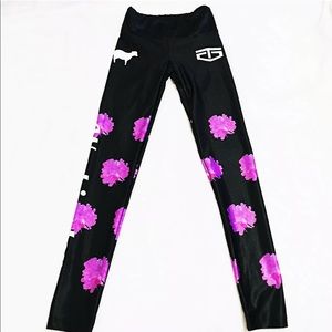Goldsheep Washington black and purple pink Floral leggings. polyester/spandex Handmade In Orange County Excellent condition