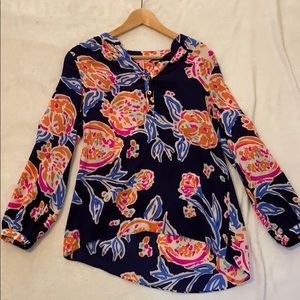 Absolutely adorable Lilly blouse. Super light weight and comfortable for hot summer nights! It is in good condition with just the slightest discoloration in the arm pit area but isn’t noticeable at all! So cute!