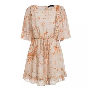 Beautiful gorgeous boho style dress. Featured style , mini. Has a drawstring tie at waist. Little pearl button at neck. In Beautiful hues of creams. Dress it up or down.
