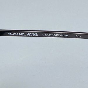 From the "of the moment" label, the timeless "Carter" features classic cool Silver metal detailing w/ MICHAEL KORS signature at temples.