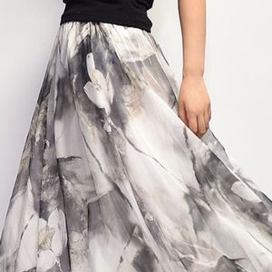 NEW watercolor multi colored, flowing floral long maxi skirt. Elastic waist ,lined. Muted design, floral design. Gray, black, white tones.