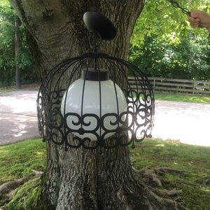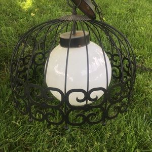 Aurther Umanoff designed black scroll metal birdcage pendant light fixture, mid century. Great condition. They need to be hard wired.