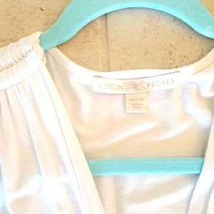 Boston Proper White Maxi Dress. It measures 55" laying flat from top of shoulder. Front slit comes above the knee. BP always runs big. This dress fits more like a Small! HOT Dress