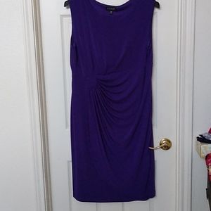 Beautiful purple dress with eye catching detail on skirt. Top is lined. Material is stretch and super comfortable. No zipper and washable.