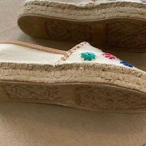 JACK ROGERS Palmer Espadrille Sizes 6.5 Natural with multi color stitched blossoms; approximately 1” platform; NEW IN BOX