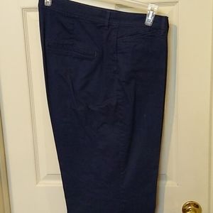 Navy blue Old Navy Crop Slacks. From button and zipper closure. Front pockets. Back pocket detailing. Cropped so inseam is 25".
