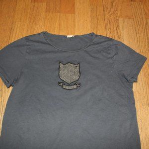This listing is for a preowned 100% authentic J Crew black TWEED PATCH Short Sleeve Top /T Shirt