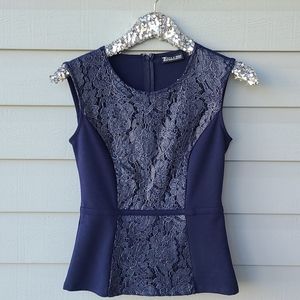 NWT. Metallic lace with stretchy knit. Sleeveless. Cute peplum style.