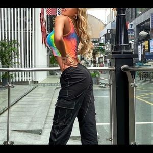 Multicolored, Slim Fit, Crop, Boho Style, Slight Stretch, Not Sheer