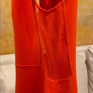 Beautiful fitted style. French connection sheer panel back zipper dress. A showstopper on. Color is called Masai Red. It’s more on the orange side.