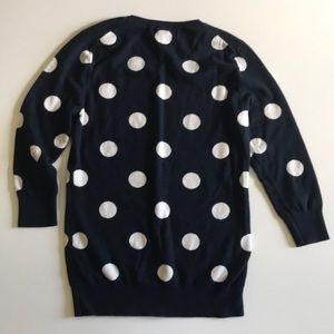 Fun blue with white polkadots banana republic extra small three-quarter sleeve sweater. 60% cotton 40% rayon. Double lined. Just as fun to turn inside out and see the white with blue polkadots! Note the pilling under the arms