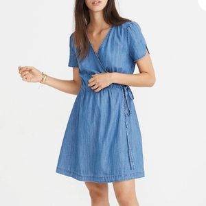 NWT $158 Madewell Denim Tulip Sleeve Wrap Dress