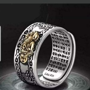 This is a fun and functional ring to bring peace, tranquility and luck to all that wear it. This piece has the dragon holding a coin in its mouth for prosperity, with a protection, wealth manifestation & health prayer written on it. This is an adjustable size.