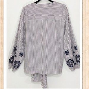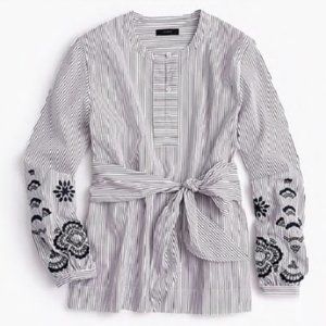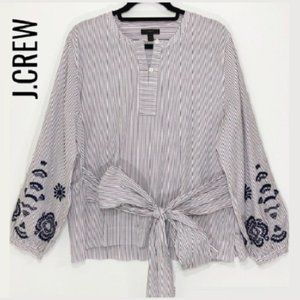 J.Crew Embroidered Tie-Front Striped Tunic Top