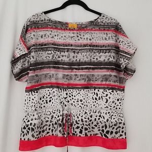 Excellent used condition! Ruby Rd, size medium. Red, black & grey blouse with tie waist detail. This is a great top!