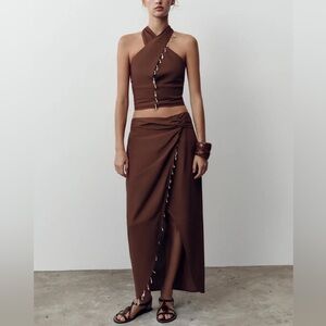 Zara cotton and linen blend 3 piece knit matching set NWT