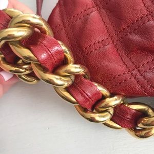 Marc Jacobs Little Leather Stam Shoulder Bag. Red. New condition. Has been stored in a bag for a long time. Maybe used once or twice. There is a scratch on top. Please see all pictures. The chain has rubbed and discolored some of the leather on the handle. In good condition comes with Marc Jacobs card. Authentic! Retail $795