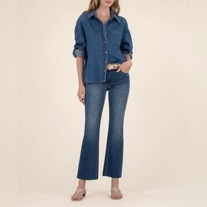 Lucky Brand’s lace inset tee is a soft cream color that looks gorgeous layered under a sweater or jacket. Approximate measurements lying flat: bust 18.5”, length down center back 25”. In excellent condition with no visible damage. Worn 2-3 times. There is a darker thread sewn into the lace on the front of the tee (see last picture) but it’s not very noticeable. Please ask questions before purchase as all sales are final.