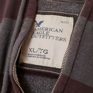 American Eagle Outfitters Strong, Warm Hoodie. Washed out gray colors with stripes. Zipper front with pockets.