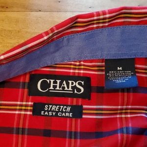 This is brand new, never worn, stretch fit. Approx. 70/30 Cotton/Polyester blend Medium Chaps Button Down