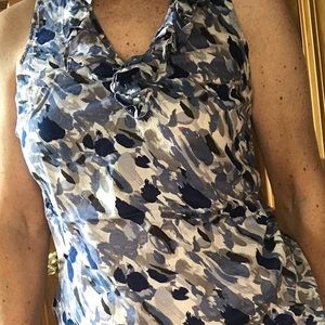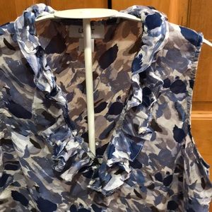 Loft Sleeveless Small Blue White Grey Top Ruffle