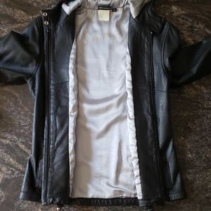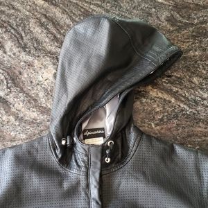 @belissa2000 I am not sure but would say it is not like a hoodie. It is a thicker leather material. I hope that helps.
