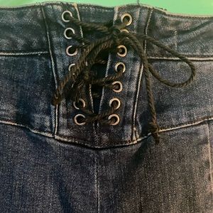 Why We ❤ It: Back lace detail, seaming for added shape, raw bottom hem, contoured waistband that hugs your waist, just right, with a no-gap back