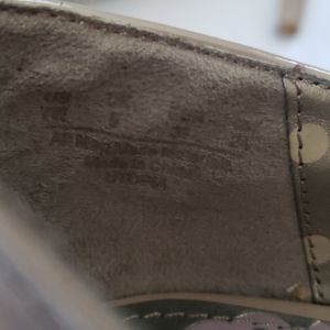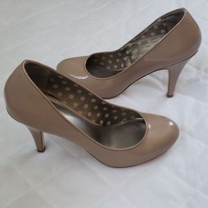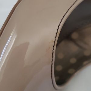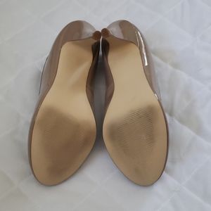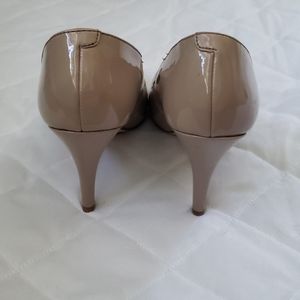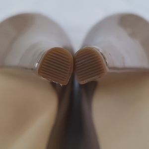 Worn only twice, size 7W beige heels. In very good condition but 2 very small blemishes as noted in photos. Please feel free to ask questions or send an offer. My items come from a smoke-free and pet-free home.