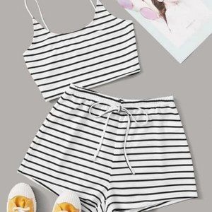 NWT Striped Crop Cami Top & Tie Waist Shorts Set