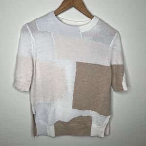 Soft woven 100% Cotton gauze, in yellow and cream plaid, scoop neckline, button closure along both side seams, and a slight shirttail hemline.