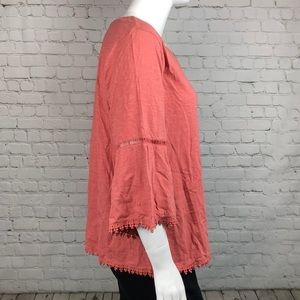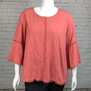 Lightweight Copper Rose Crochet Trim Bell Sleeve Top by Style & Co. Sizes 2X & 4X