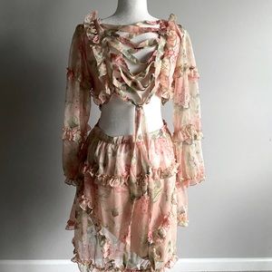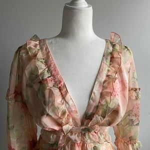 New!✨Open back dress in mini length. Features a criss-cross lace up detail through the back, fitted waist and ruffle accents through neck and hem. Brand new. Boutique.