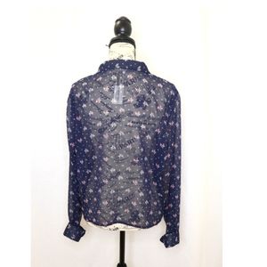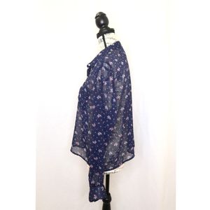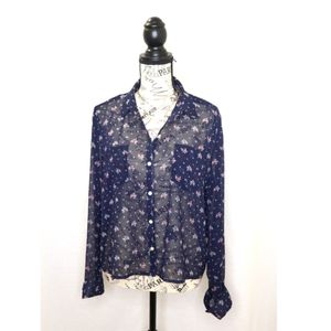 This Aeropostal button down bluse is a nice style. Navy blue color, has a beautiful flower print design. Long sleeves, sheer fabric is soft and comfortable. Brand new (NWT) All reasonable offers are welcome!😊